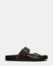 The ABOTT BURGUNDY LEATHER slide sandal combines understated elegance with practical comfort. Intricate grommet detailing adorns the upper. while dual buckles ensure a customizable. secure fit. The supportive footbed is engineered for extended wear. making this a sophisticated choice for those who demand both style and functionality in their everyday footwear.